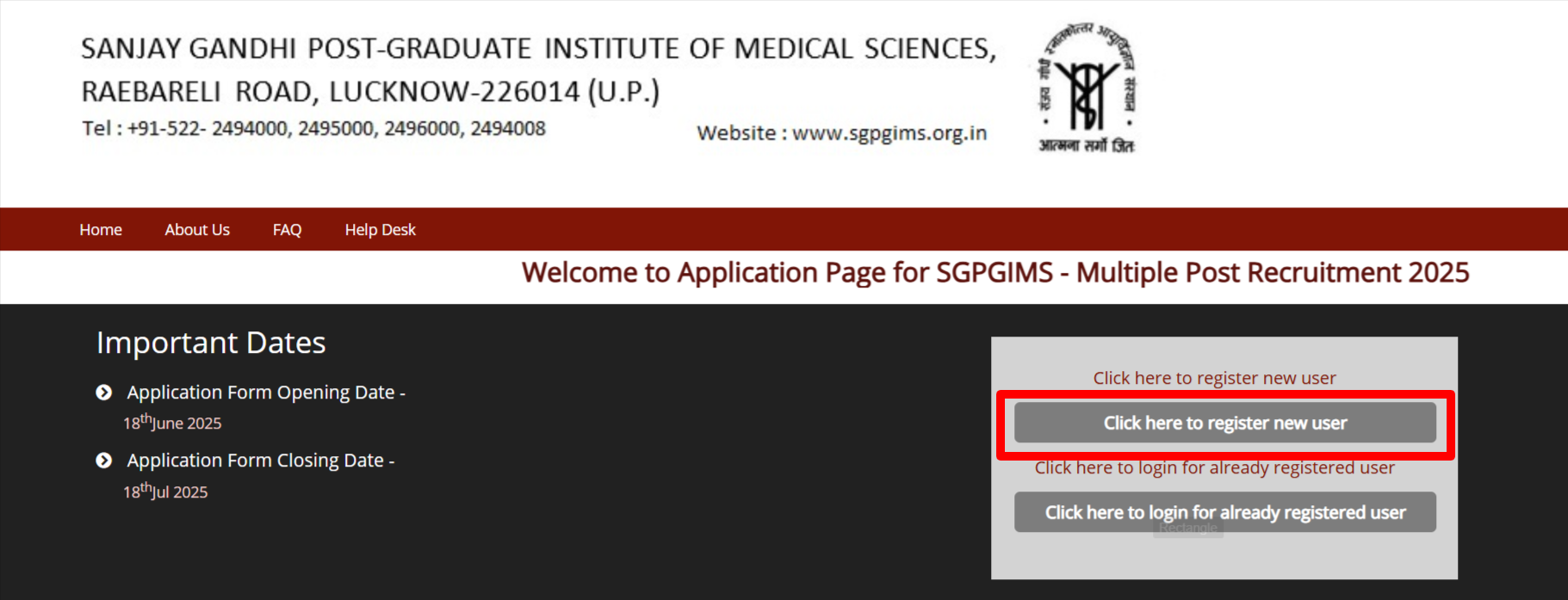 - SGPGIMS Recruitment 2025 मे आवेदन करने के लिए सबसे पहले आपको इस डाइरैक्ट लिंक पर क्लिक करना होगा।