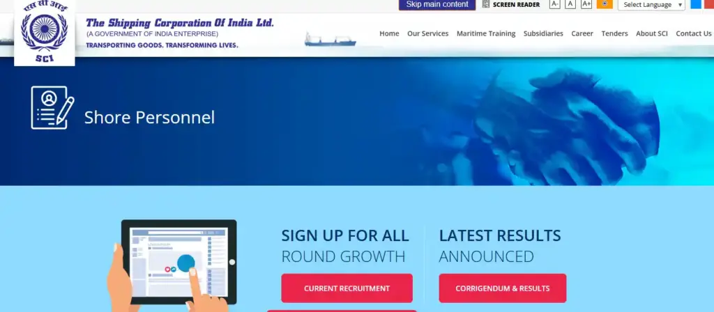 - सबसे पहले आपको SCI की आधिकारिक वेबसाइट shipindia.com पर जाना होगा। होम पेज पर ही आपको सबसे ऊपर Nav Bar में ‘Profession’ की ऑप्शन दिखेगी, उस पर क्लिक करें।