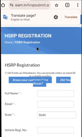 Step By Step Porcess of SIAM HSRP Quantity Plate On-line Apply?
