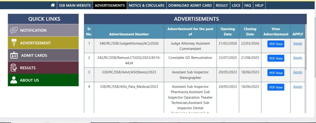 - सबसे पहले आपको SSB की आधिकारिक वेबसाइट recruitment.ssb.gov.in पर आना होगा।