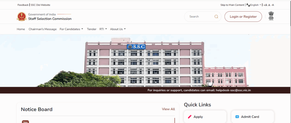 सबसे पहले SSC की आधिकारिक वेबसाइट ssc.gov.in पर जाएं।