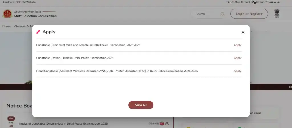 SSC Delhi Police Head Constable Recruitment 2025 के लिए उम्मीदवारों को SSC की आधिकारिक वेबसाइट से ऑनलाइन ही आवेदन करना होगा। पूरा प्रोसेस नीचे स्टेप्स में दिया है। इन स्टेप्स को फॉलो करें।