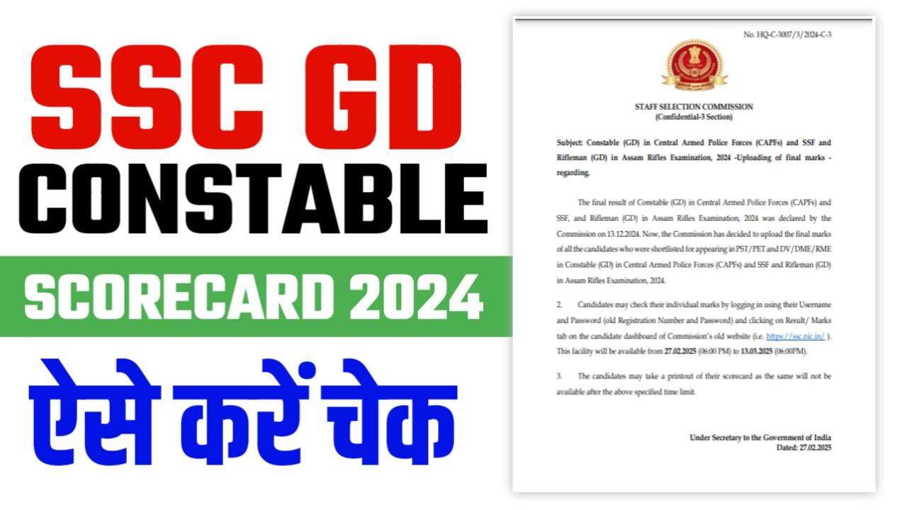 एसएससी जीडी कॉन्स्टेबल 2024 का स्कोर कार्ड हुआ जारी, जाने क्या है स्कोर कार्ड डाउनलोड करने की लास्ट डेट और क्या है पूरी प्रक्रिया – SSC GD Constable Scorecard 2024?