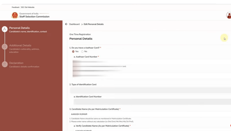 - क्लिक करने के बाद आपके सामने इसका SSC OTR फॉर्म खुल जायेगा जिसे आपको ध्यानपूर्वक भरना होगा,