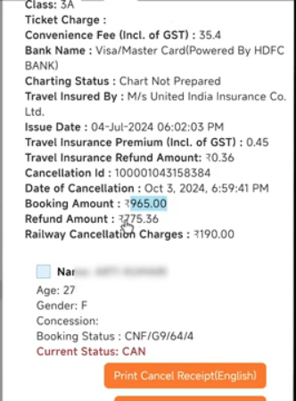 • अन्त में, आपको यहां पर Print Cancel Receipt के विकल्प पर क्लिक करके इसकी रसीद का प्रिंट निकाल लेना होगा आदि।