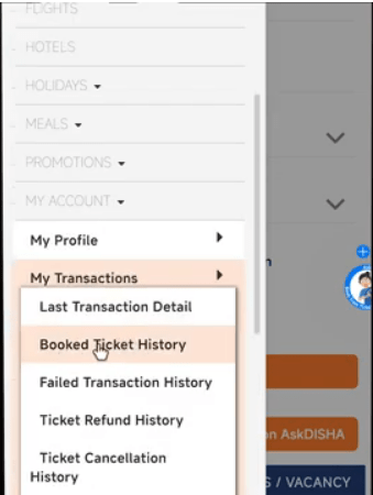 • अब यहां पर आपको Booket Ticket Historical past का विकल्प मिलेगा जिस पर आपको क्लिक करना होगा,