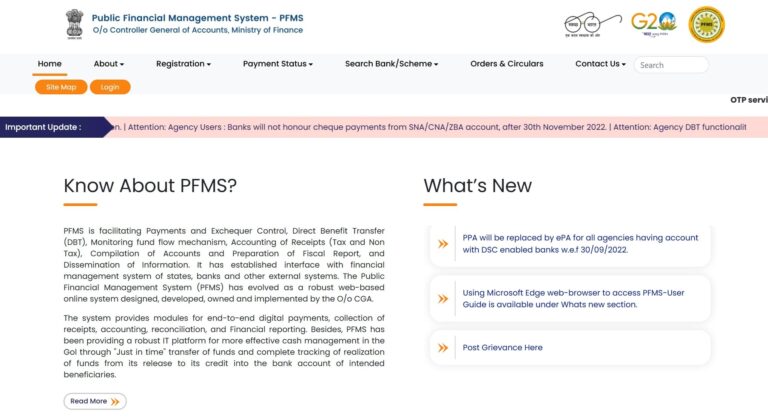 • सबसे पहले अपने मोबाइल में ब्राउज़र खोलें और pfms.nic.in वेबसाइट पर जाएं।