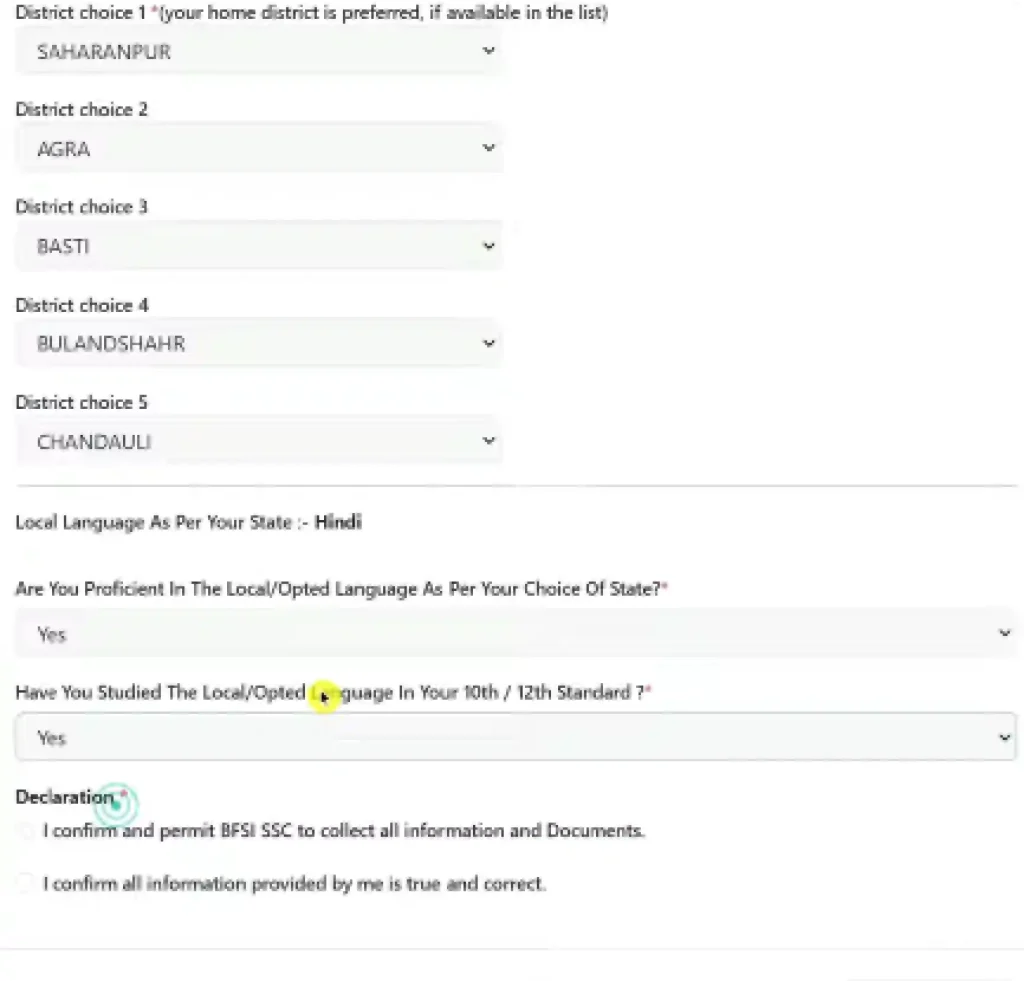 - इसके बाद आपको अपनी State और District Preferences (Selection Filling) करनी होगी।