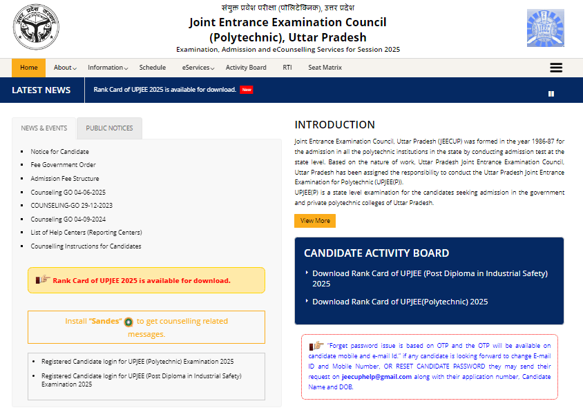 - UP Polytechnic Rank Card 2025 को चेक व डाउनलोड करने हेतु सबसे पहले आपको इसके Official Web site के होम – पेज पर आना होगा जो कि, इस प्रकार का होगा –