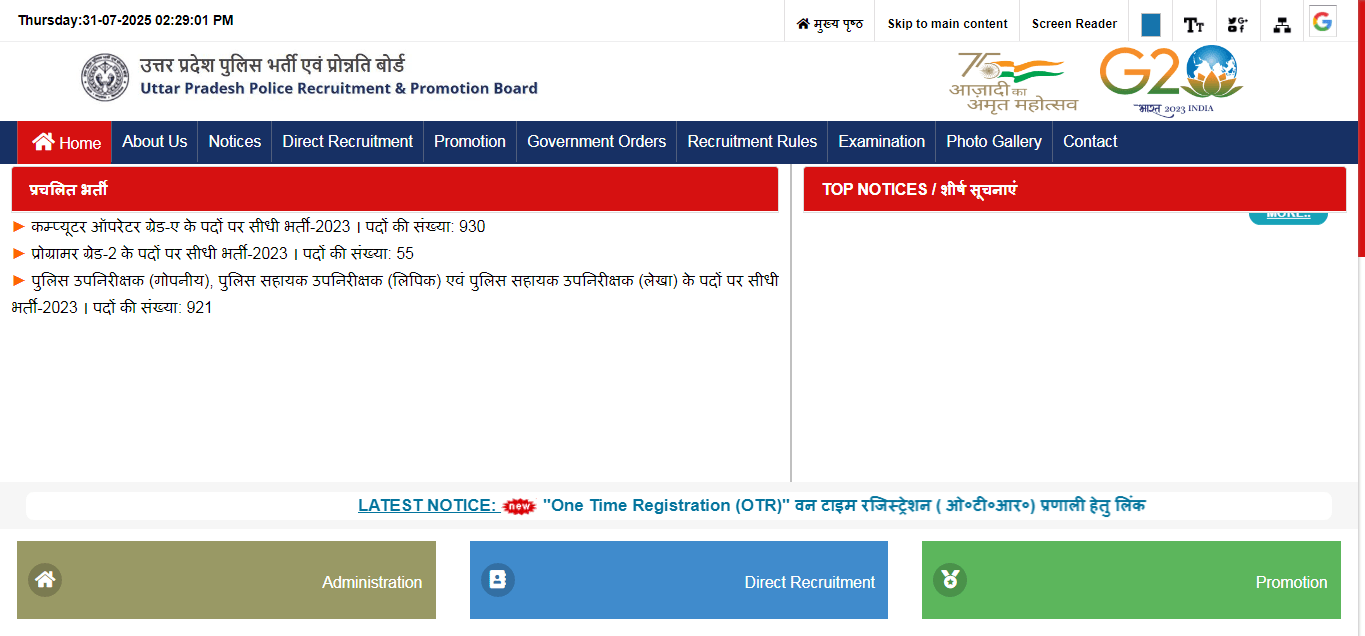 - UPPRPB One Time Registration OTR On-line Type 2025 करने के लिए सबसे पहले आपको इसकी Official Web site के होम – पेज पर आना होगा जो कि, इस प्रकार का होगा –