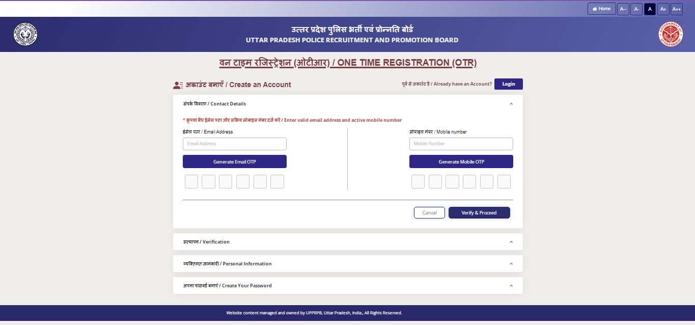 UPPRPB One Time Registration OTR On-line Type 2025 Begins From |