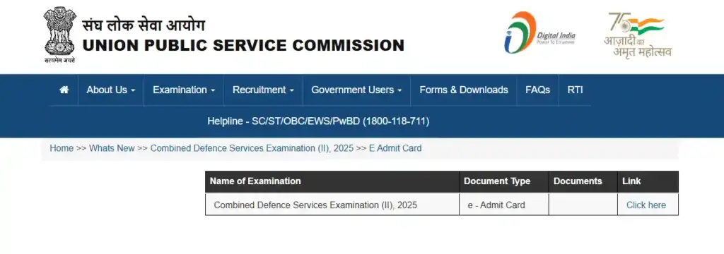 You may obtain the UPSC CDS 2 Admit Card 2025 from the official UPSC web site: upsc.gov.in.