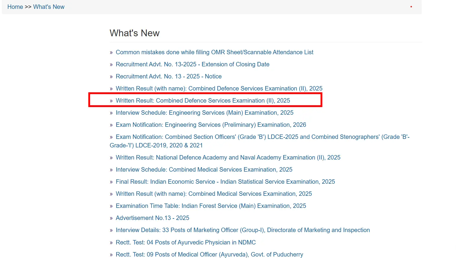 Step 2 – इसके लिए आपको दिये हुये लिंक पर क्लिक करना है जिसके बाद एक नया पेज खुल जाएगा और CDS II Outcome का नोटिफ़िकेशन लिंक दिख जाएगा जिसपर क्लिक करना है।