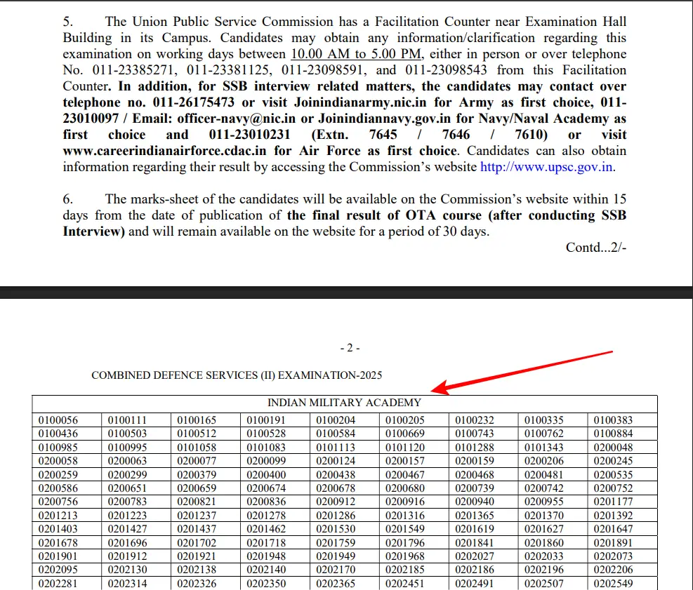 UPSC CDS 2 Outcome 2025 – संघ लोक सेवा आयोग में सीडीएस परीक्षा 2025 का परिणाम 9 अक्टूबर 2025 को घोषित कर दिया है। जिसको लेकर लाखों विद्यार्थी काफी दिनों से उत्साहित थे अब आप यूपीएससी की आधिकारिक वेबसाइट पर इस रिजल्ट को देख सकते हैं। आज इस लेख में हम आपको UPSC CDS 2 Outcome के बारे में पूरी जानकारी देंगे इसके अलावा बताएंगे कि एसएसबी इंटरव्यू और सिलेक्शन कैसे होता है। परीक्षा का आयोजन 14 सितंबर 2025 को देश भर के परीक्षा केदो पर सफलतापूर्वक हुआ था और कल 453 पदों के लिए यह भारती आयोजित हुई थी। आपको बता दे यूपीएससी चयन प्रक्रिया पारदर्शिता और निष्पक्षता के लिए जानी जाती है जिसमें लिखित परीक्षा एसएसबी इंटरव्यू और मेडिकल टेस्ट होता है।