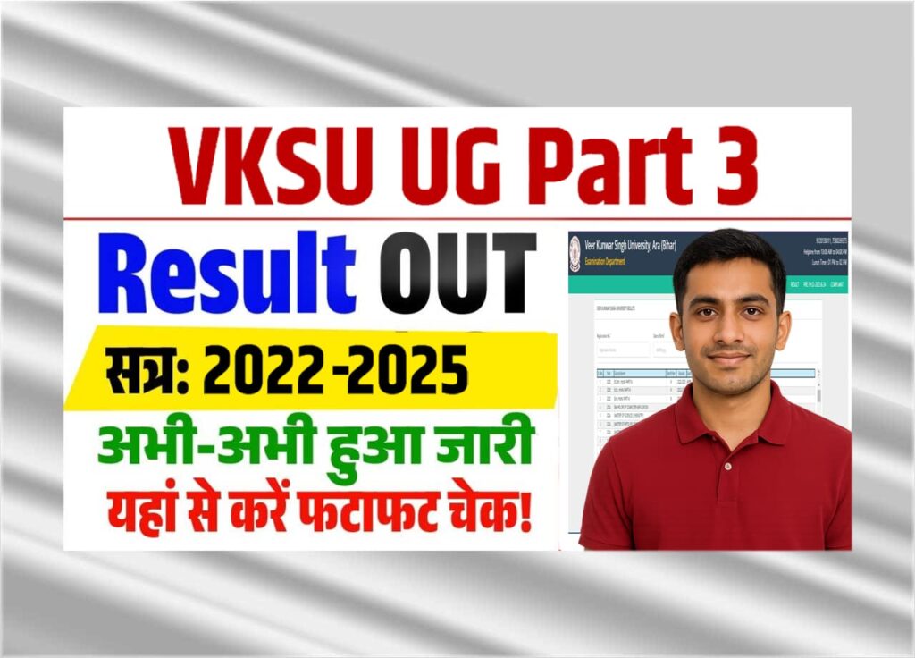 वीर कुंवर सिंह यूनिवर्सिटी, आरा द्धारा बीते दिनों यूजी कोर्सेज पार्ट 3 की परीक्षाओं का आयोजन किया गया था जिसके बाद से पार्ट 3 के स्टूडेंट्स बेसब्री के साथ अपने – अपने पार्ट 3 के रिजल्ट के जारी होने का इंतजार कर रहे है और इसीलिए अपने सभी पार्ट 3 के स्टूडेंट्स को इस आर्टिकल की मदद से विस्तापूर्वक VKSU UG Half 3 Consequence 2025 की जानकारी प्रदान करना चाहते है जिसके लिए आपको अन्त तक बने रहना होगा।