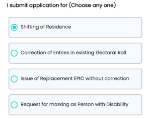 - अब आपको Voter ID Card में क्या-क्या सुधार सकते हैं, उसकी एक Checklist दिखेगी।