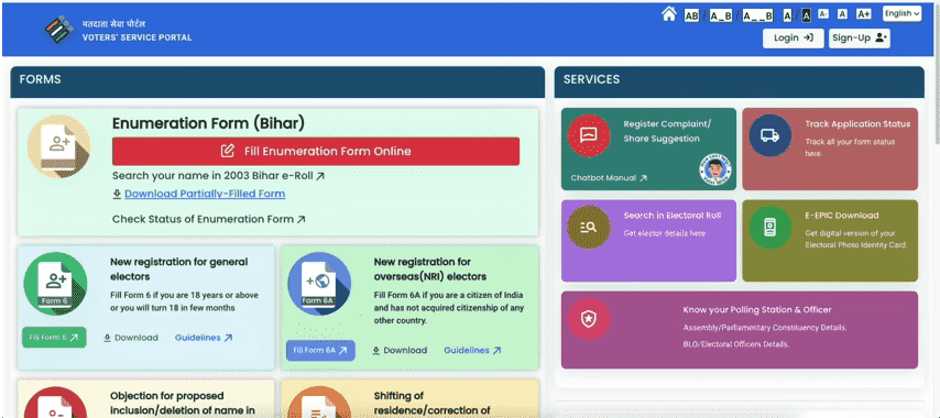 - Voter Listing Mein Apna Naam Kaise Dekhe के लिए सबसे पहले आपको वोटर सर्विसेज पोर्टल के ऑफिशियल वेबसाइट के होम – पेज पर आना होगा जो कि, इस प्रकार का होगा –